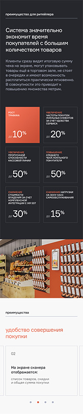 Отсутствие очередей и быстрый, интуитивно понятный интерфейс сокращают время совершения покупки, а минимизация социальных контактов становится большим плюсом для покупателя во время пандемии